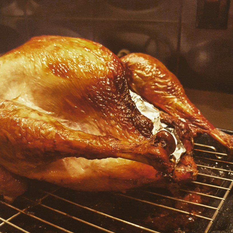 This was my second year tackling the turkey on my own and it may be my bias taste buds taking creative liberty in saying this, but I nailed it. Last year, it was ok, but I definitely aspired to upping my turkey game on the next round. I’m loose and carefree when it comes to cooking, and recipes/directions have always been more guidelines than rules to me. So, with some swinging by the seam of my pants on this, I winged the prep and cooking of this 6.8kg bird, and was pleasantly surprised.